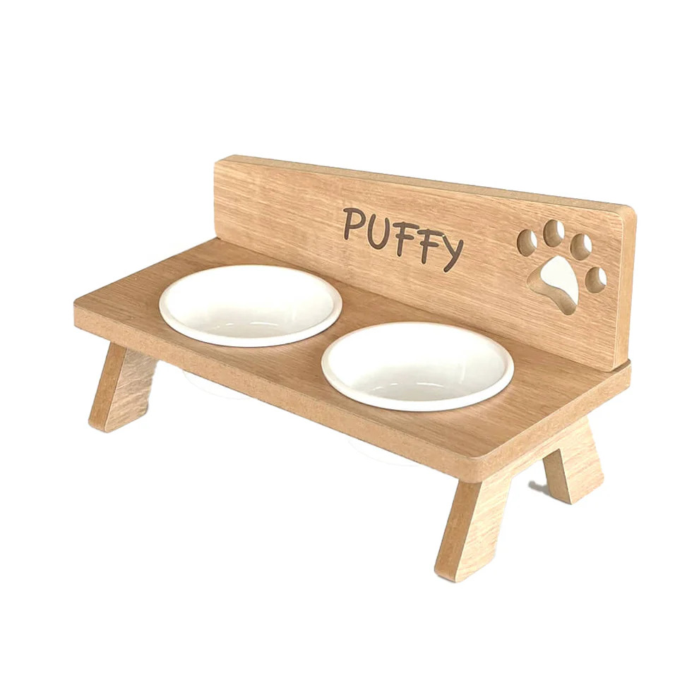 MDF Ahşap Mama Kabı İsme Özel Porselen Kaseli