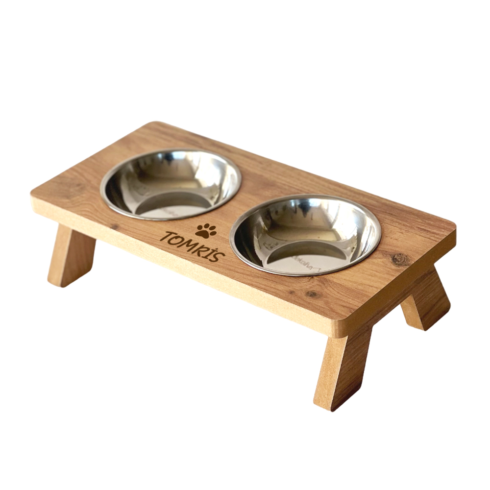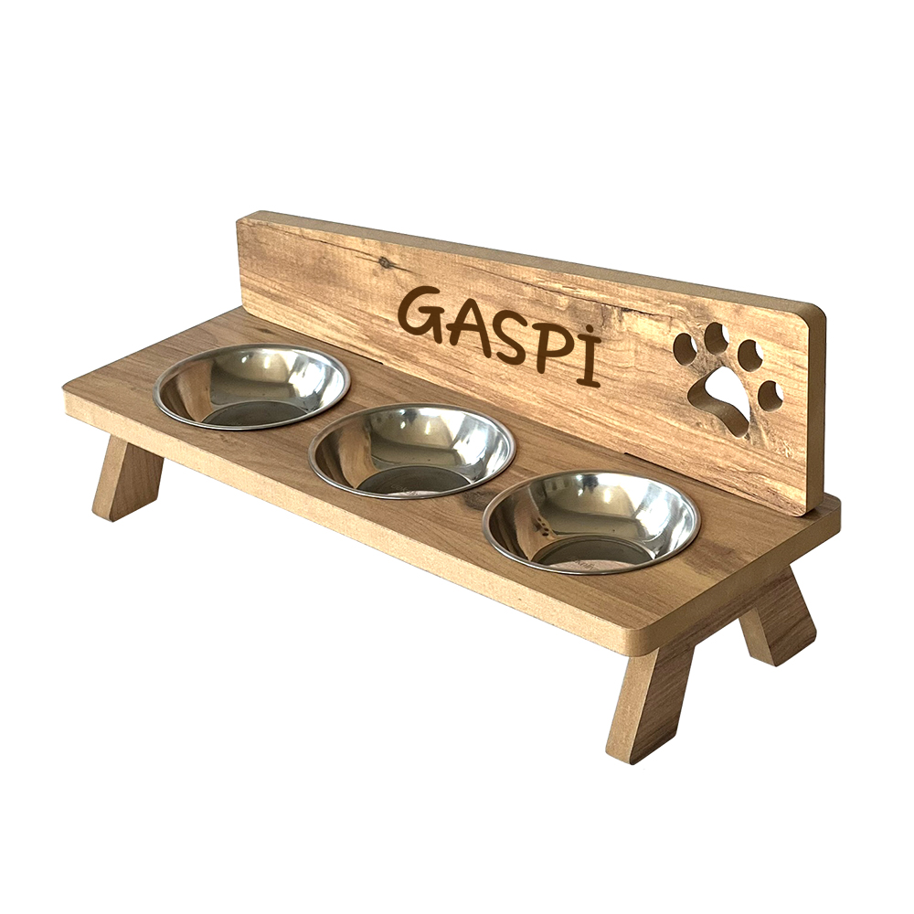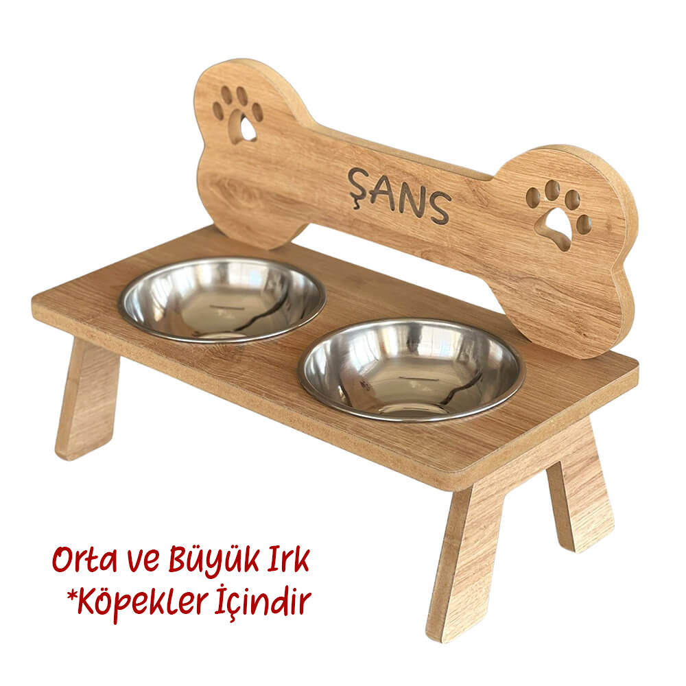 MDF Ahşap Mama Kabı İsme Özel Çelik Kaseli