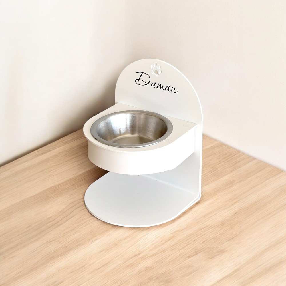 Çelik Kaseli Beyaz Pleksi Mama Standı