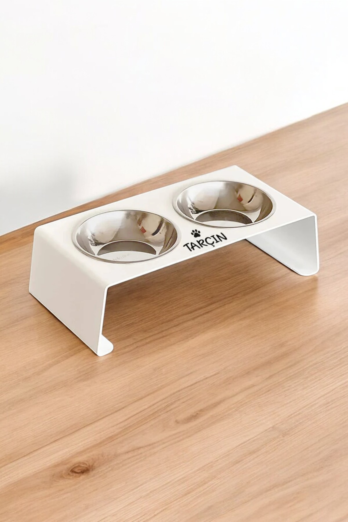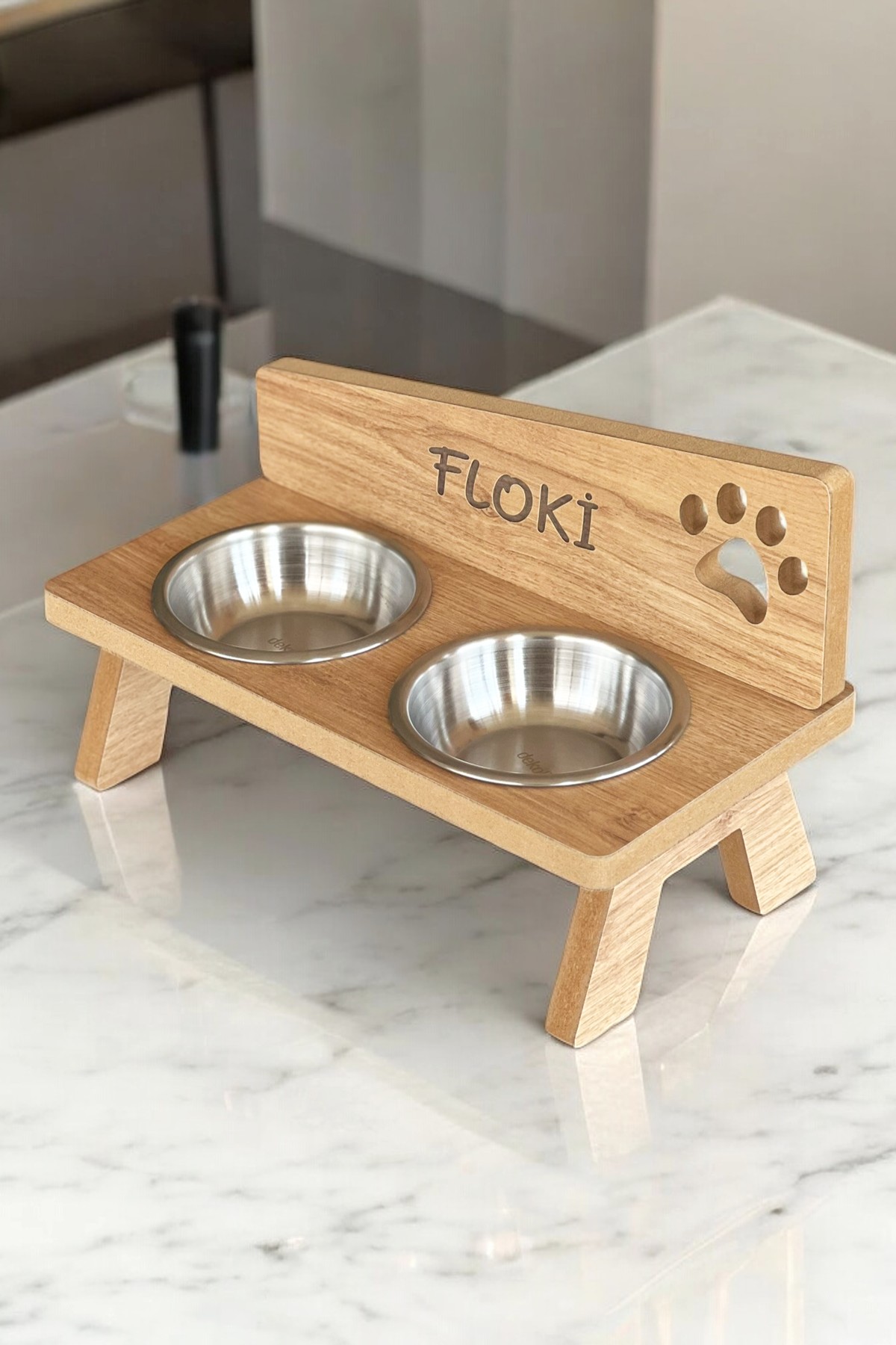 MDF Ahşap Mama Kabı İsme Özel Çelik Kaseli 2447