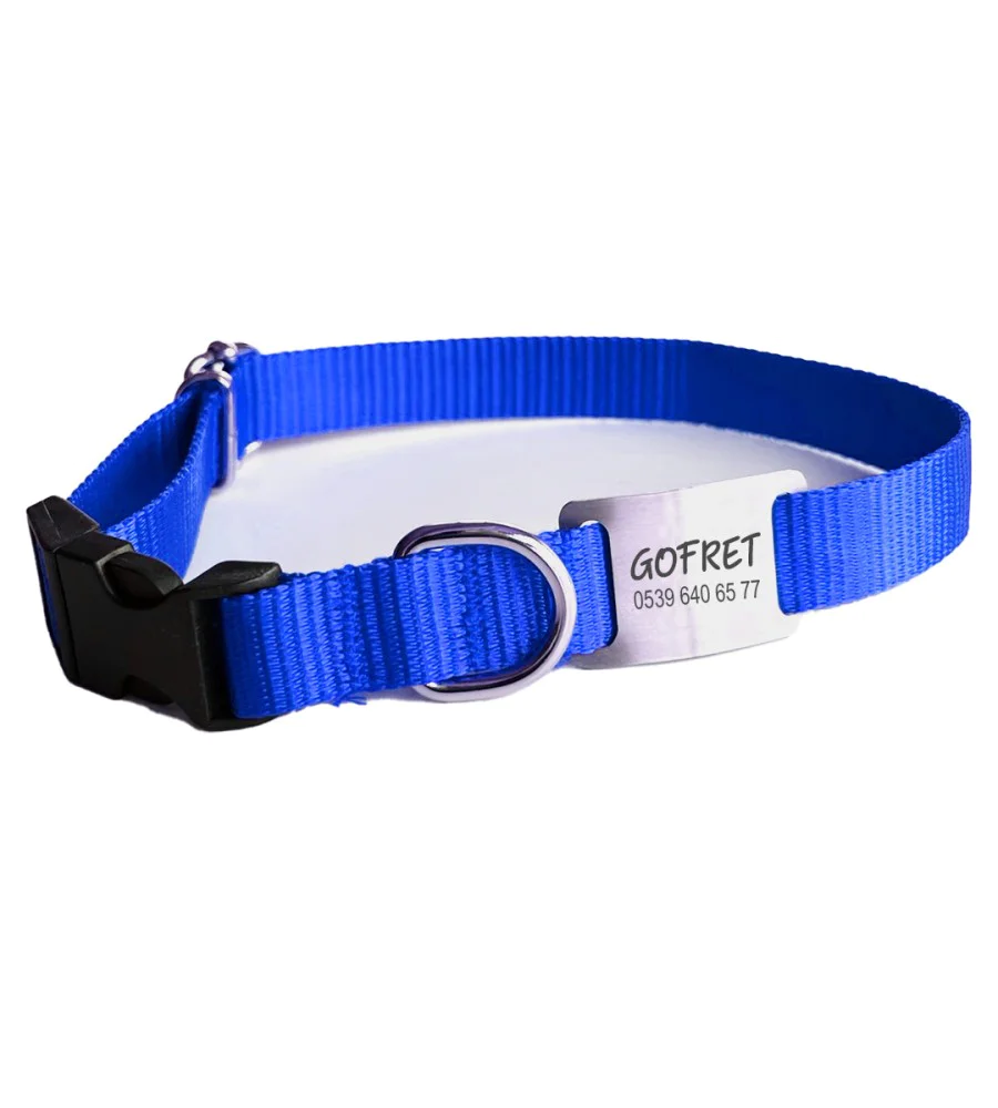İsimlikli Mavi Küçük Orta Irk Köpek Tasması 21-35 cm