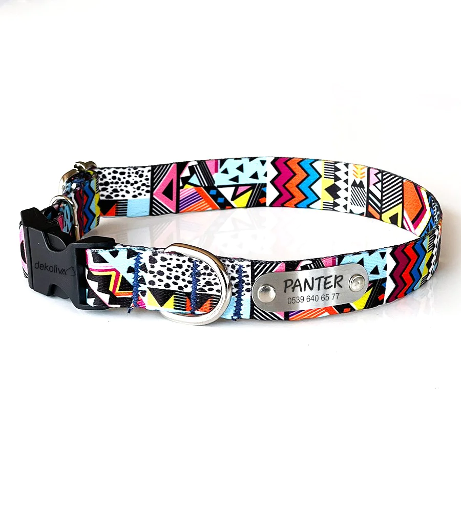 Sabit İsimlikli Etnik Desen Küçük Orta Irk Köpek Tasması 21-35 cm