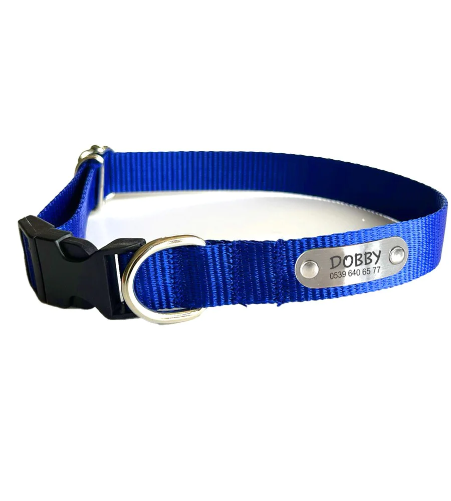 Sabit İsimlikli Mavi Küçük Orta Irk Köpek Tasması 21-35 cm