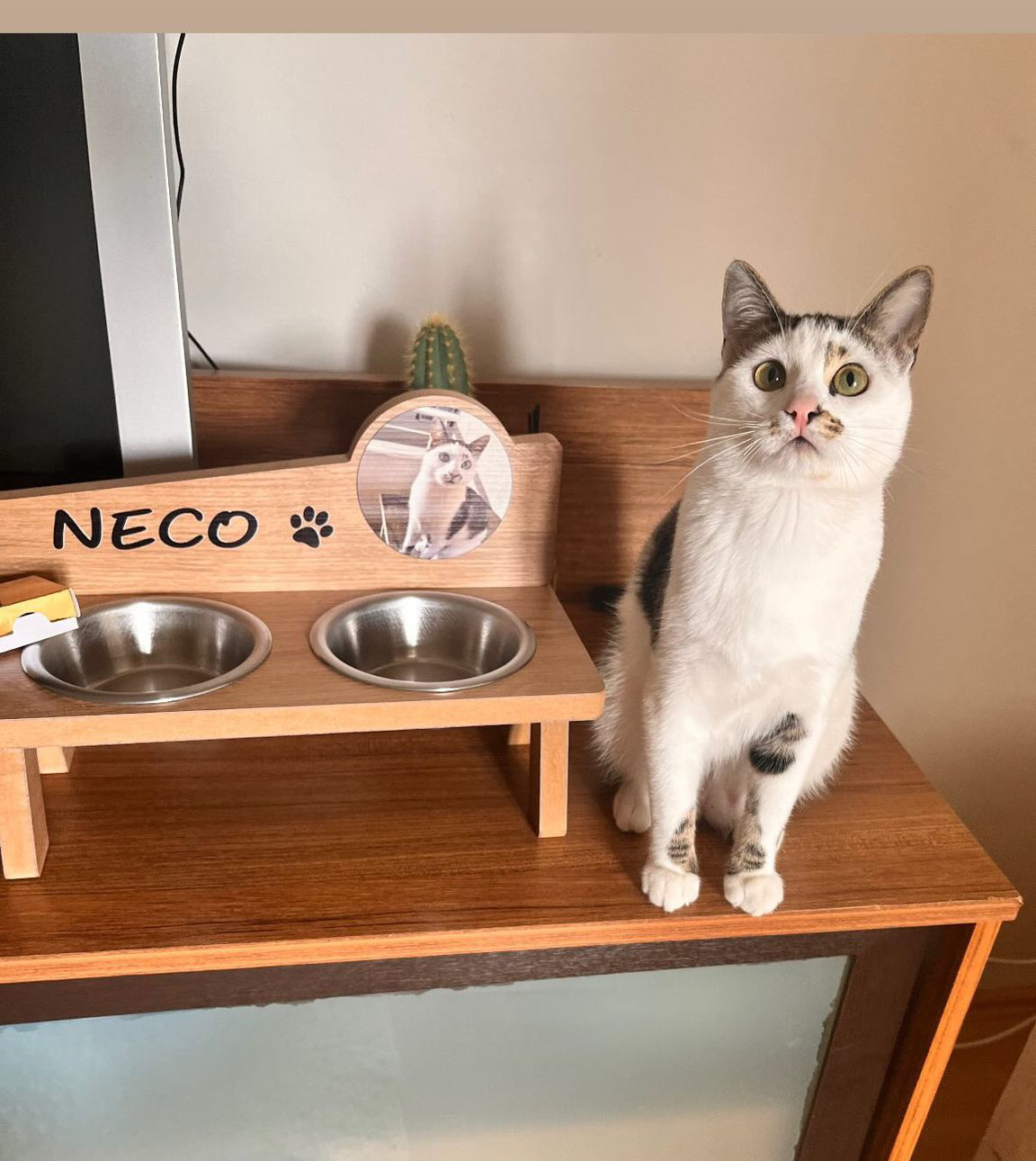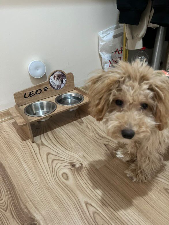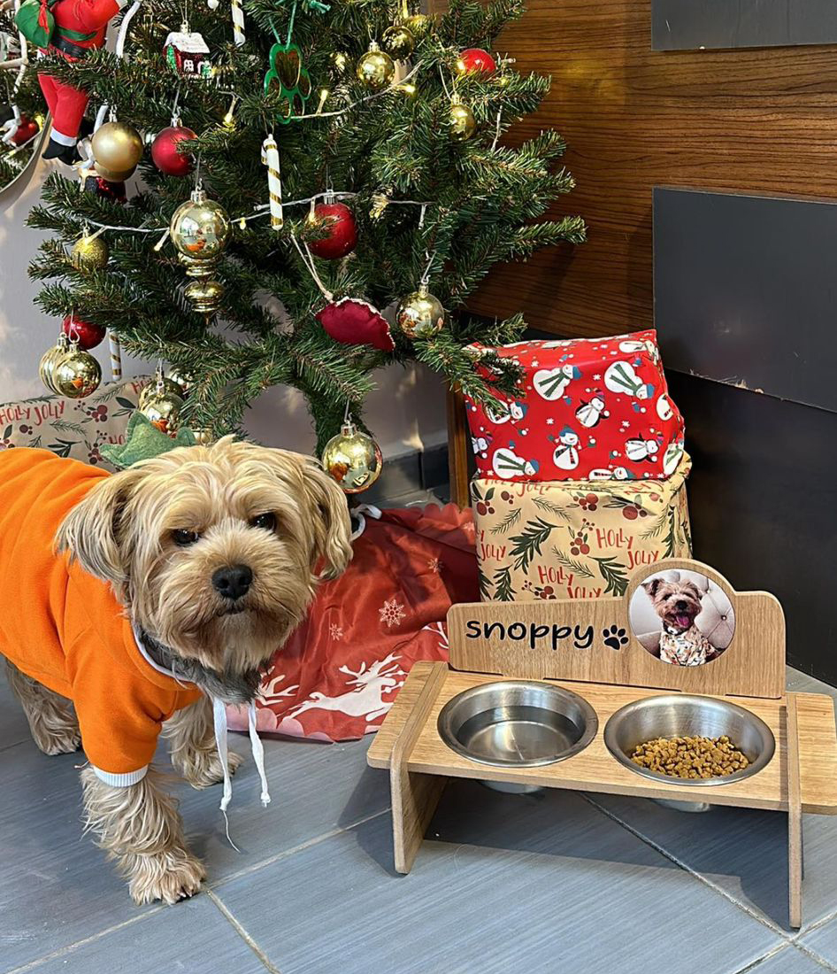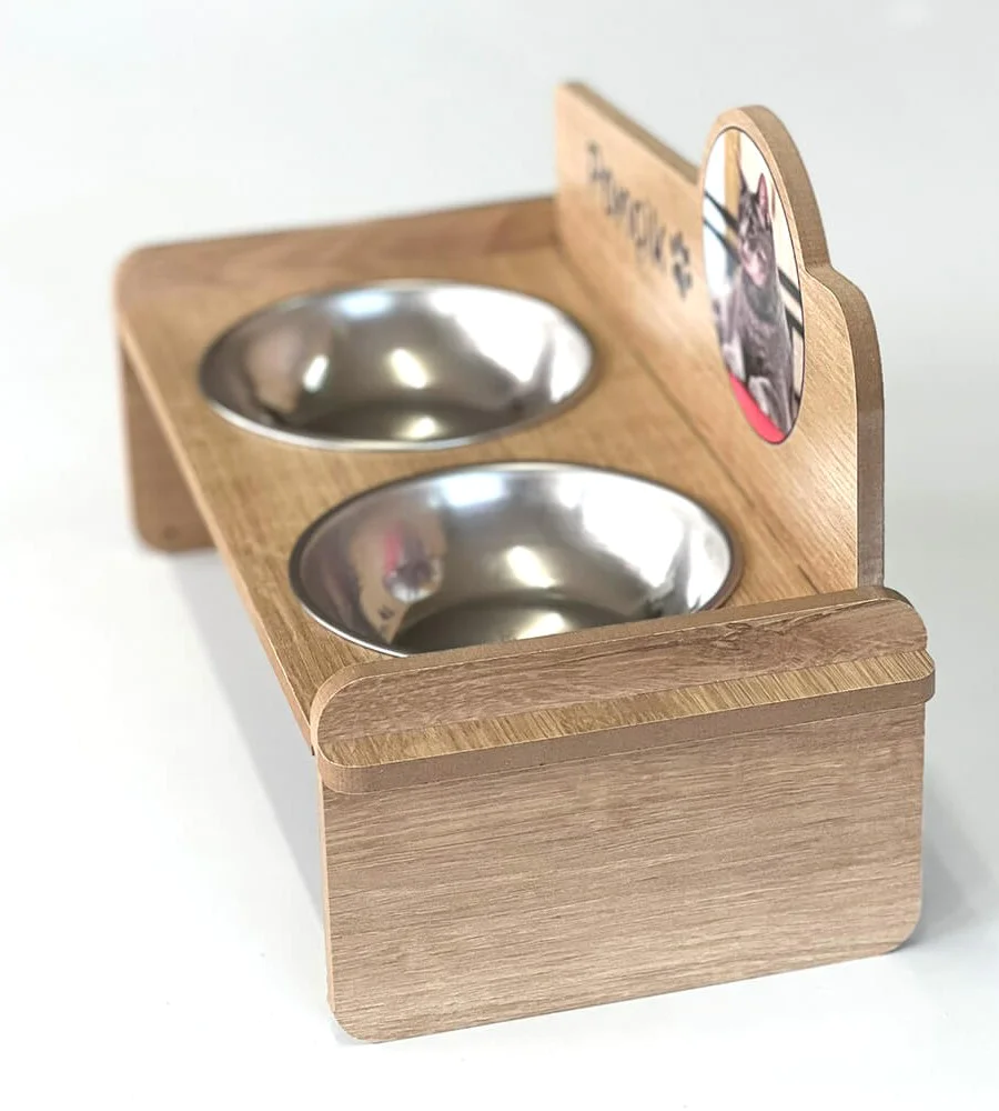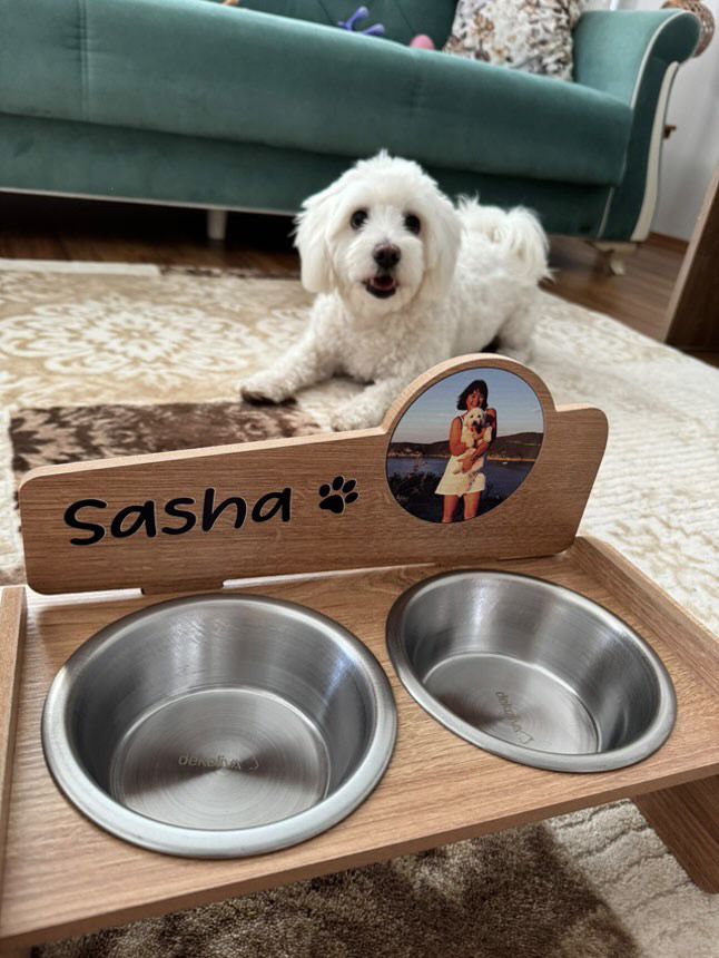 Fotoğraflı MDF 8mm Ahşap Mama Kabı İsme Özel Çelik Kaseli