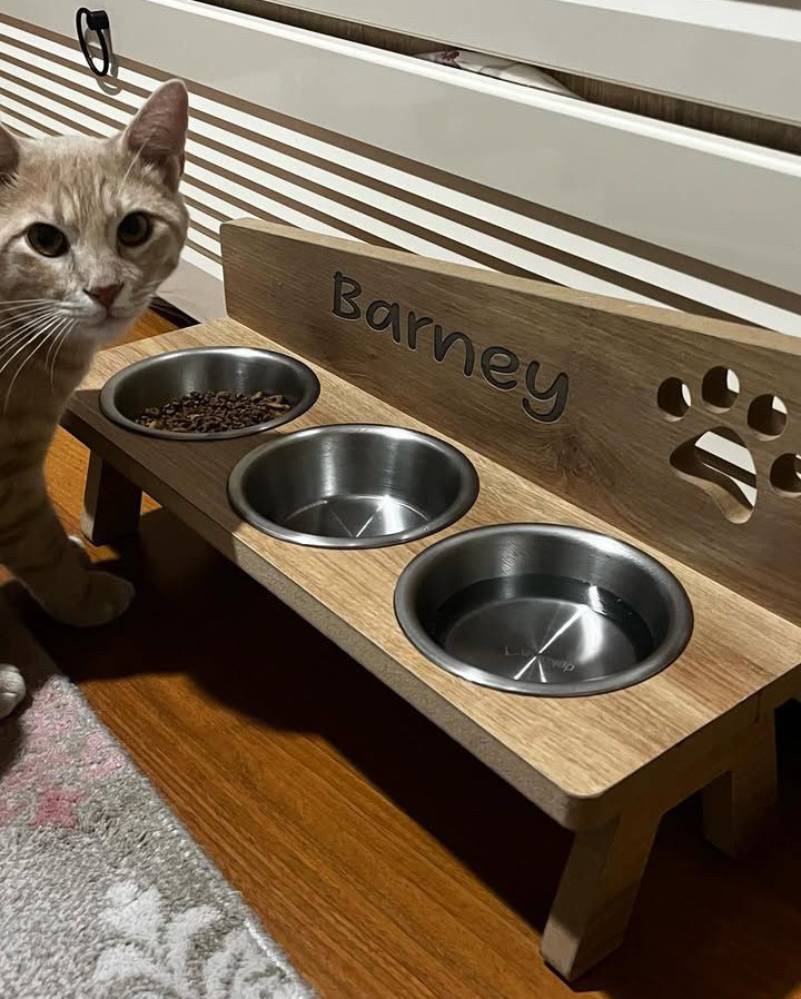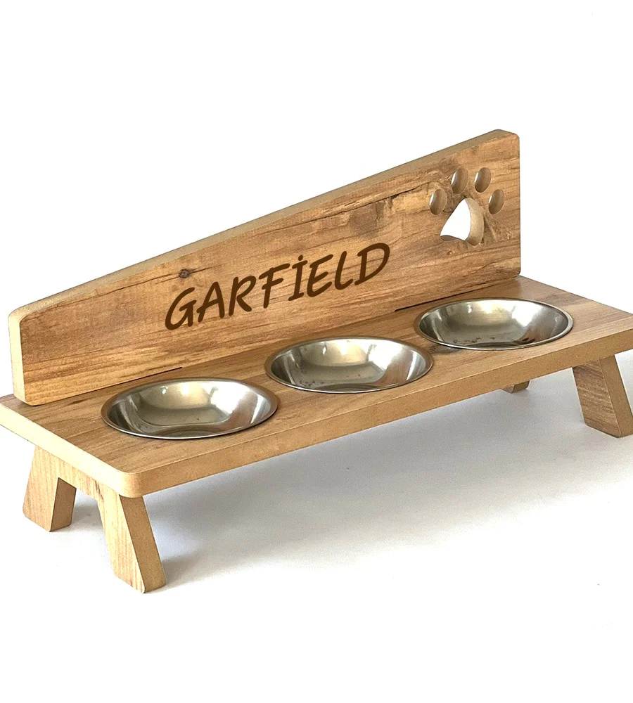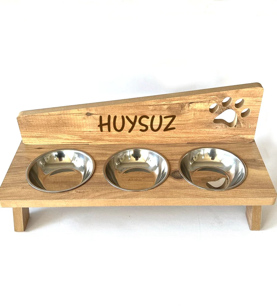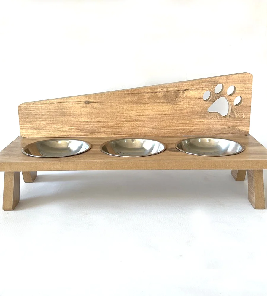 MDF Ahşap Üç Kaseli Mama Kabı 7861
