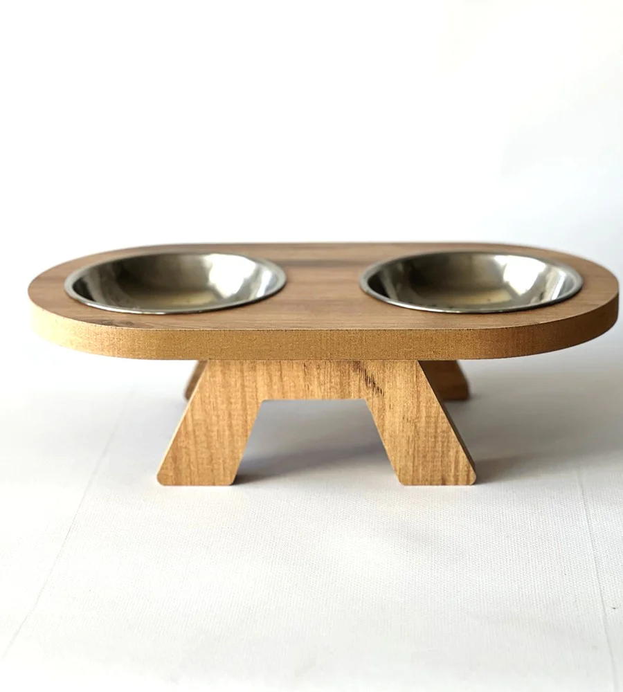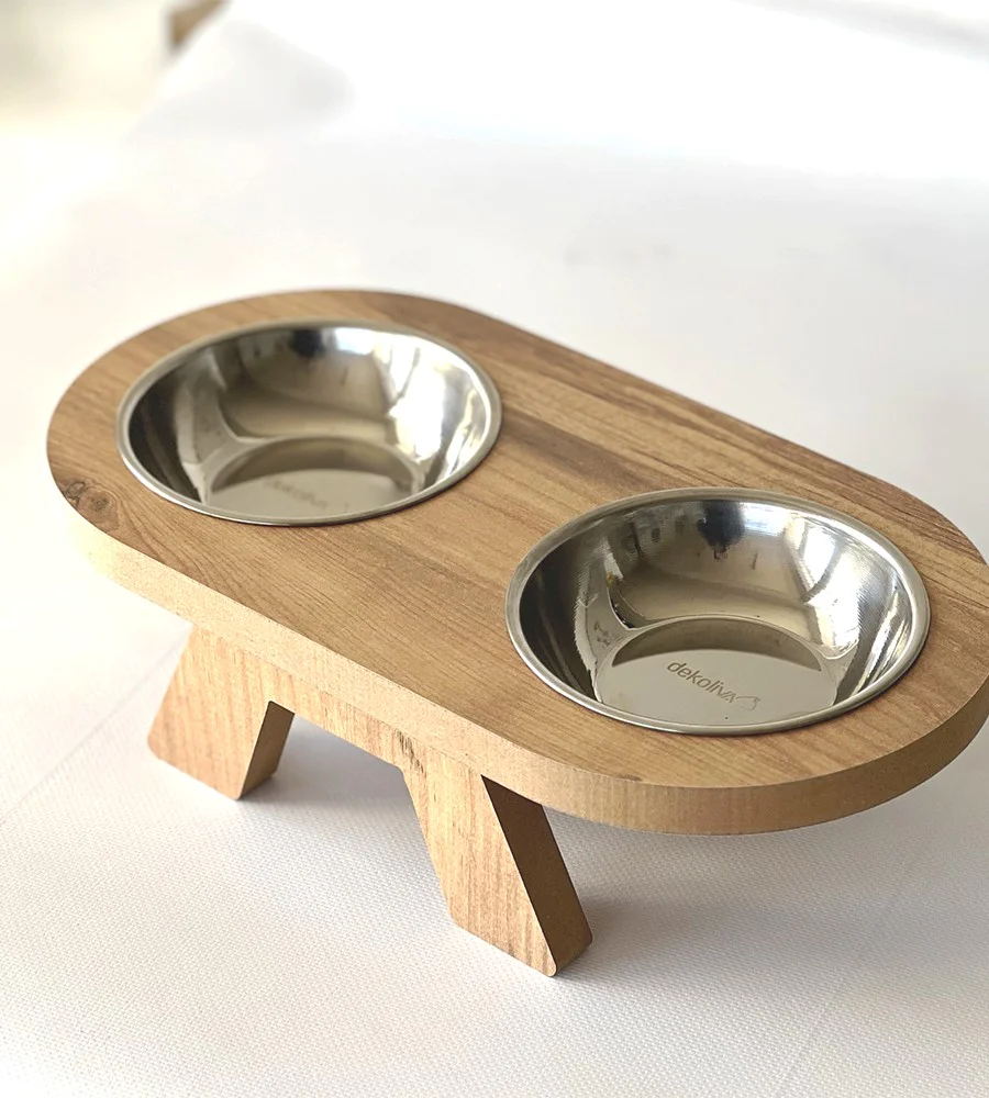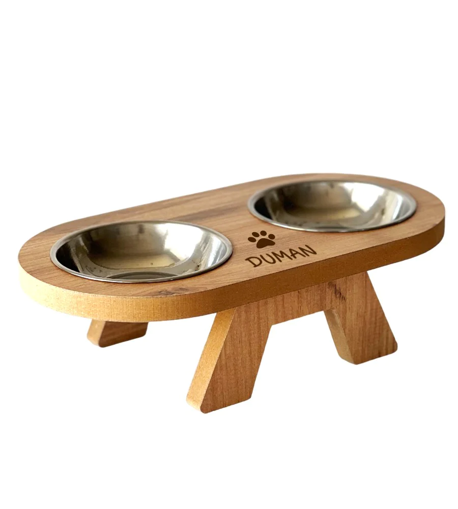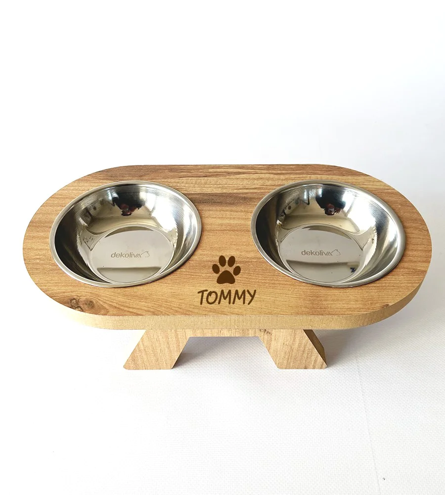 MDF Oval Ahşap Mama Kabı Çelik Kaseli