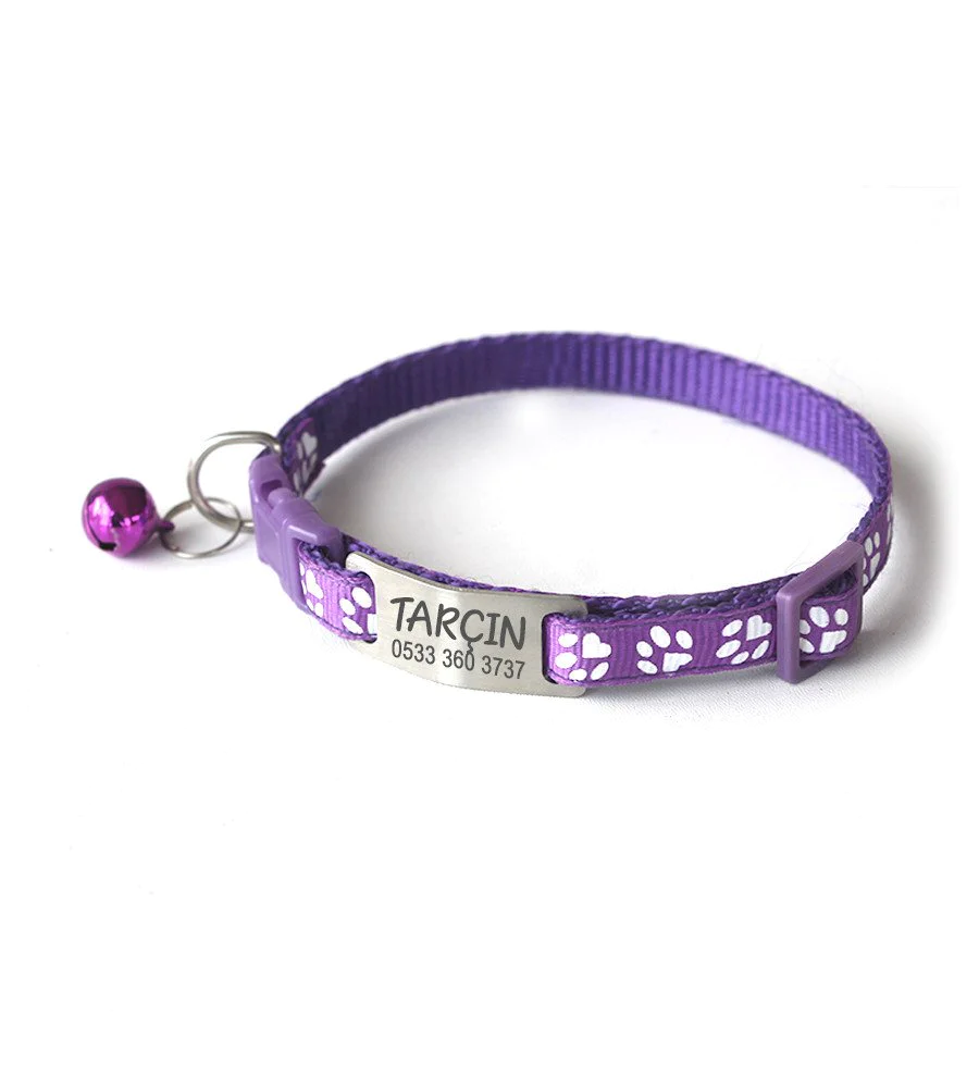 Kediler İçin Metal Künye ve Mor Tasma Sallanmayan Tasma