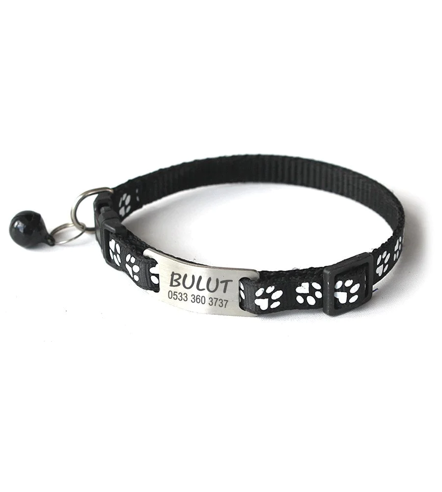Kediler İçin Metal Künye ve Siyah Tasma Sallanmayan Tasma