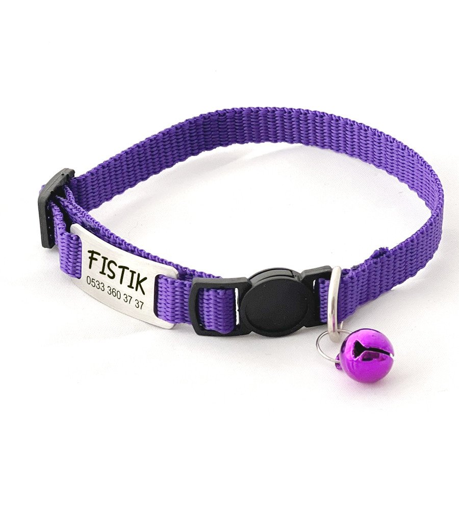 Düz Mor Safety Click Tasma İsimlikli Güvenlik Kilitli Sallanmayan Tasma