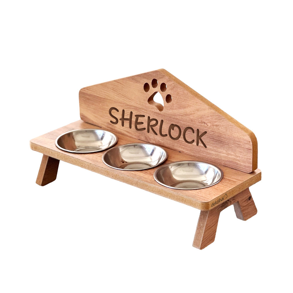 MDF Ahşap Mama Kabı İsme Özel Çelik Kaseli 2447