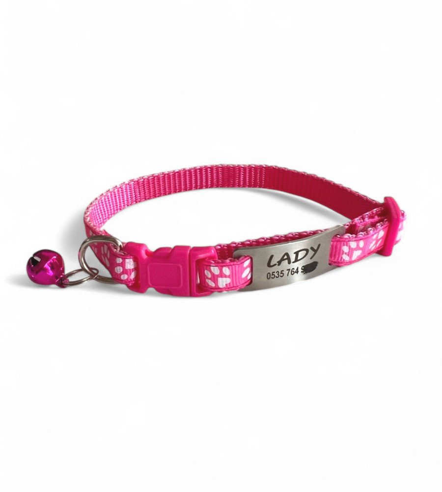 Kediler İçin Metal Künye ve Pembe Tasma Sallanmayan Tasma